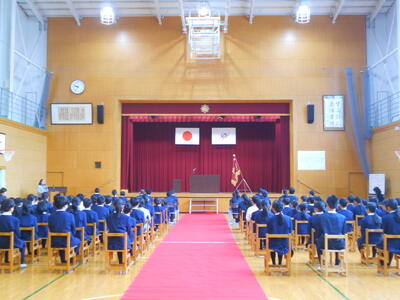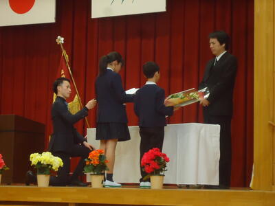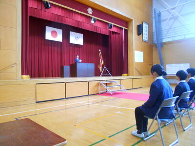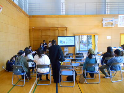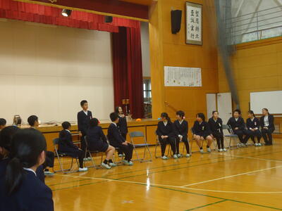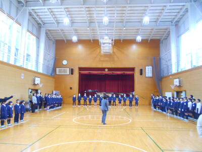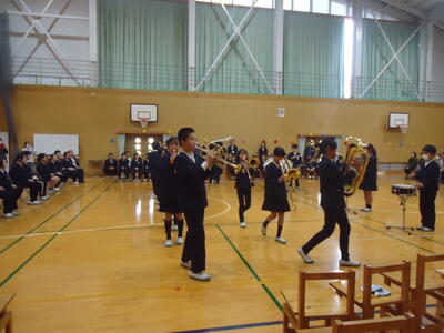 休憩をはさんで、マーチングの引継ぎ式です。1月のバンドフェスティバルの動画を皆さんに披露しました。
