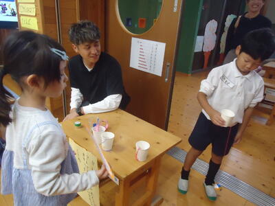 1年生は、年長さんが喜んでくれて、とてもうれしそうです。