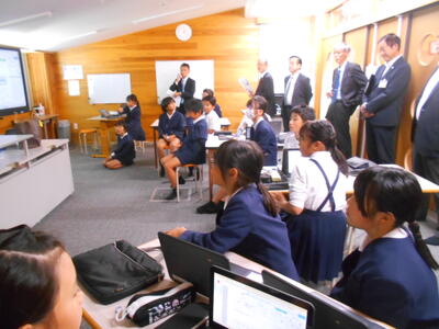 加計小学校にも来ていただき、協調学習の授業とマーチングバンドの練習風景をご覧いただきました。