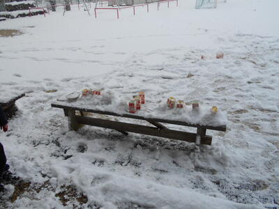 この寒さの中で、氷をつくってみるという実験だそうです。