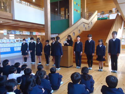 認証式では、校長先生から認証書を受け取った後、一人一人が全校児童の前で抱負を述べました。